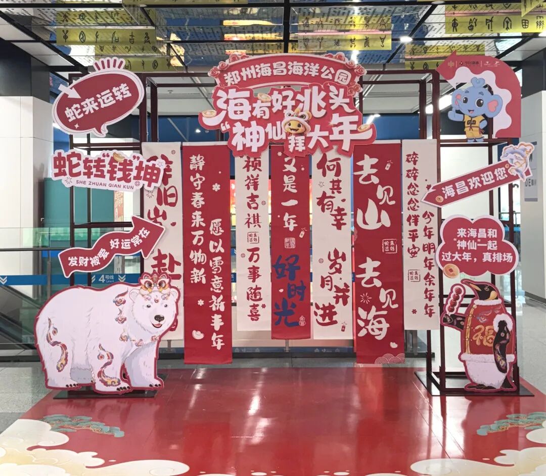 為喜迎第一個(gè)“世界非遺版”春節(jié),將聯(lián)合鄭州海昌海洋公園開(kāi)展新春巡游。1月21日10:00~12:00鄭州東站,2月11日18:00~20:00鄭州東站和會(huì)展中心站,您將有機(jī)會(huì)偶遇海昌人偶獸裝巡游隊(duì)伍,為您送上蛇年祝福,一起熱熱鬧鬧迎新年!